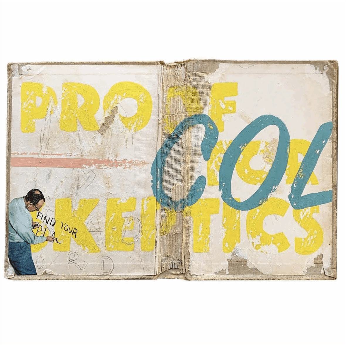 I stumbled into using book covers as substrate in 2007 as I was trying to peel a label from an inside library book cover. It was stubborn, so I decided to leave it in its place and use the entire cover. I think some of the best creative moves happen when you keep yourself open and allow for mistakes and side steps.